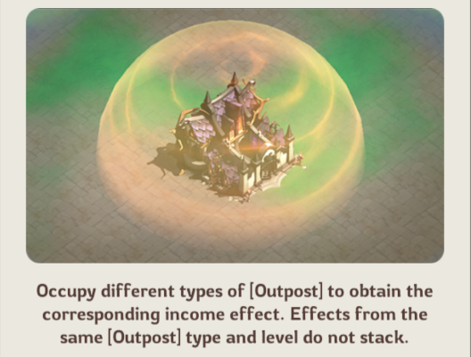 Occupying different types of Outposts grants the corresponding effect. Effects from the same Outpost type and level do not stack