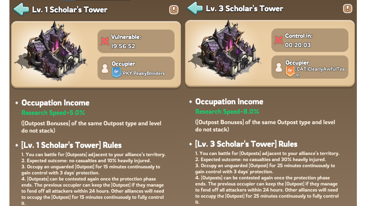 | Scholar’s Tower | Lv. 1 | X936, Y537 | Research Speed | +5% |