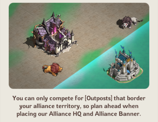 You can only compete for Outposts that border your alliance territory. To claim territory, you must first place your Alliance HQ and expand using Alliance Banners