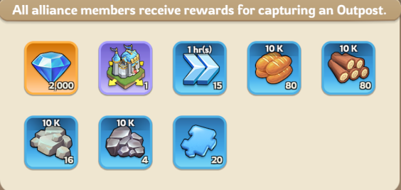 Plan your alliance banner placement early so your territory can reach important Outposts before other alliances. When a kingdom is first established, alliances that capture an Outpost for the first time receive a First Occupation Reward. This reward is distributed to all alliance members