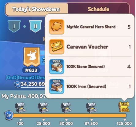 Individual milestone chests as you earn points. They can contain rare resources, basic resources and even caravan vouchers!