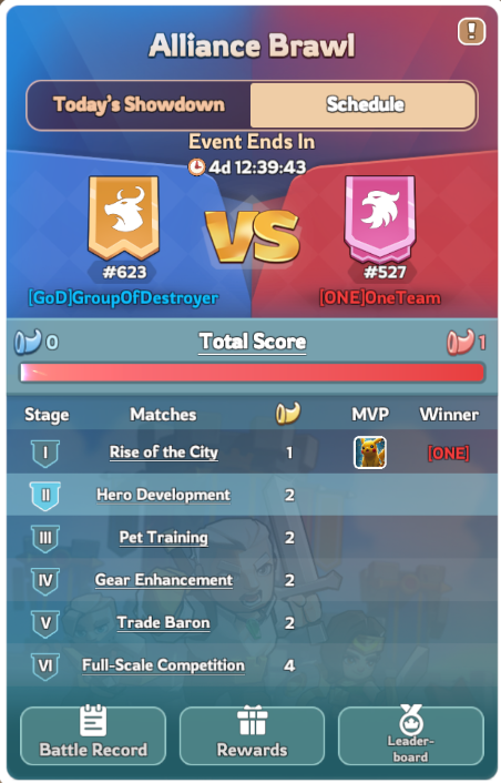 Alliance Brawl is a recurring 6.5-day alliance challenge where two alliances from different kingdoms face off for prestige, points, and exclusive rewards. The event begins right after the Kingdom of Power event in eligible kingdoms and often runs at the same time as the Merchant Empire event, and the armament/officer projects.