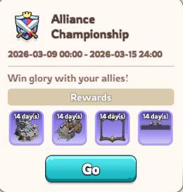 One of the most frequent events! It encourages participation, strategy between the alliance members/leaders and features competitive ranking and rewards!