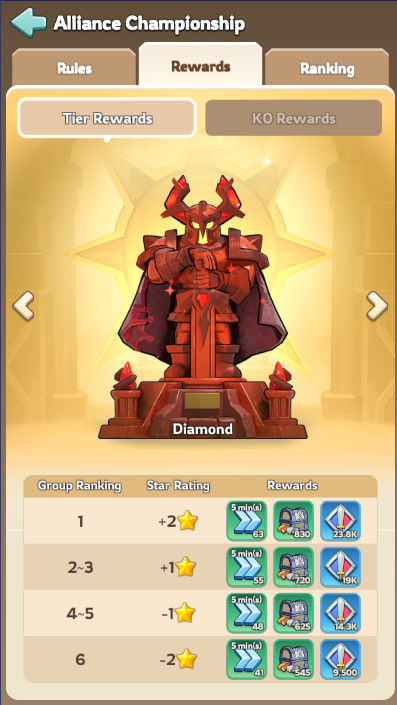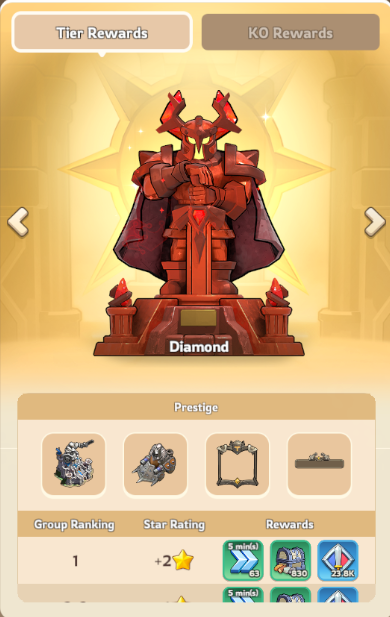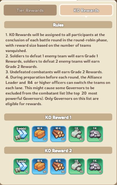 Completion Phase: From Saturday 12 UTC to Monday 00:00 UTC, your alliance will given a final ranking and set of rewards depending on the results of your rank within the tournament bracket, as well as based on your Tier;