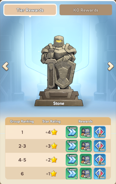 There are 6 tiers with distinct rewards; Stone, Iron, Bronze, Silver, Gold, Diamond