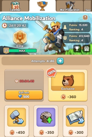 Alliance Mobilization is a recurring collaborative event that gives you rewards for doing what you are already doing everyday. It also can work as a good guide on how to grow your power. We have an amazing alliance that provides tons of new resources everyday. Here are a few strategies to make the most out of the resources you already have.