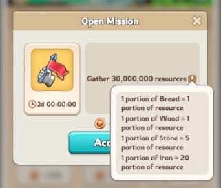 This one takes tons of time to do but no effort. A good mission to throw on right before you go to bed or have to leave the game for a long time. You can always recall troops from gathering when you need them for other events (like bear)