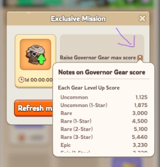 Pick 10 – 20 hammer missions when you have gear that can upgrade using that amount together. The 35 hammer mission is the least optimal due to excess spend to achieve being an odd number. The most optimal gear to level is 1 and 2 as you won’t have any excess spend. But choose the mission that best goes with the amount needed for the gear you have.