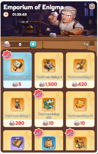 Emporium of Enigma <- “The store” of the event, where you can redeem Pearls of Enigma (the shop lasts 1 day longer than the other events, in order to give you time to redeem the pearls)