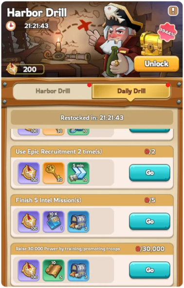 100 Treasure Hunt Points – Raise 30,000 Power by Training/Promoting Troops