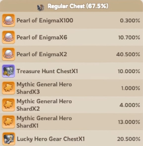 There are 3 rarities, each with their own probabilities for what treasure can be found in them, and their own probability of appearing;