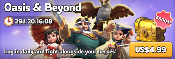 Oasis & Beyond is a beginner event in Kingshot that starts the moment you create your account and lasts for 30 days.