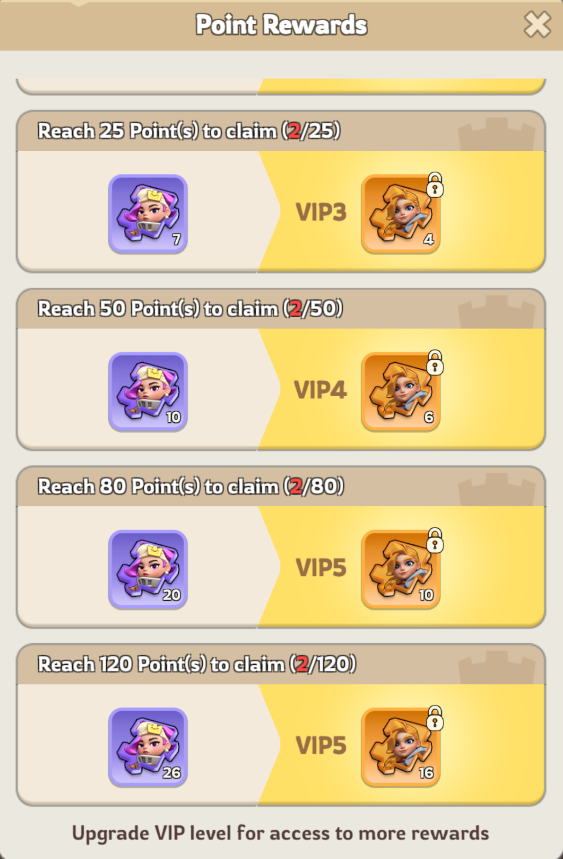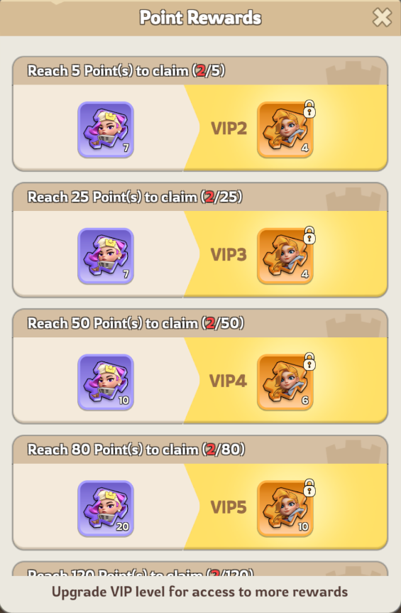 3 : Earn points to claim progress rewards, VIP governors can additionally claim mythic hero shards